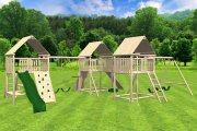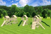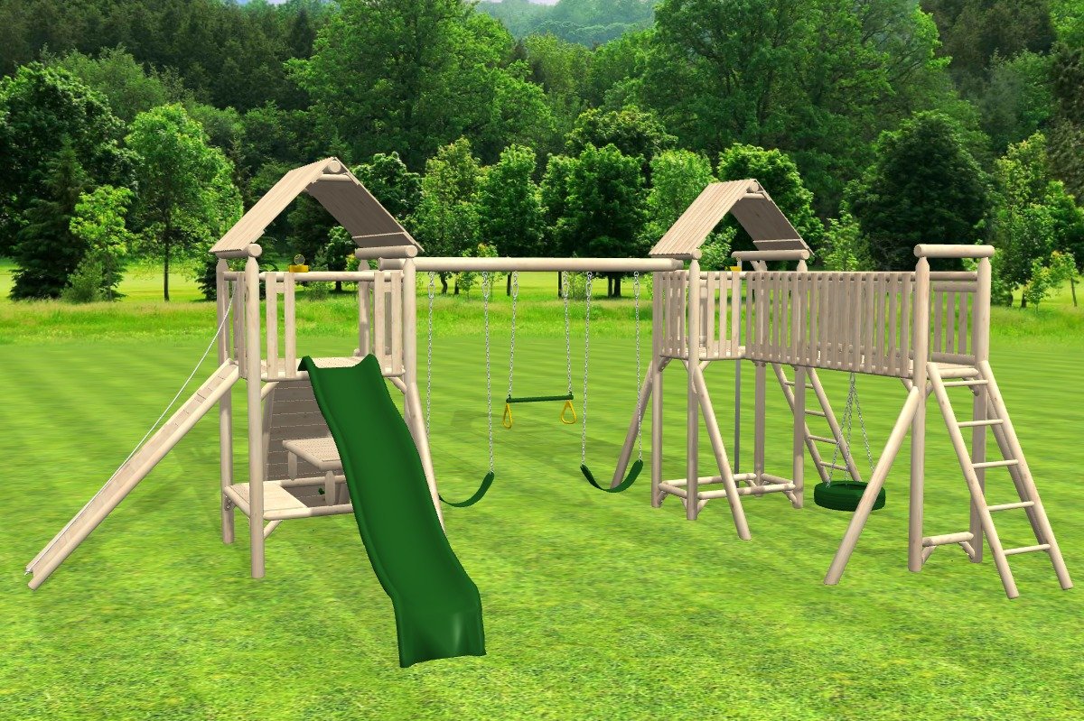 Unlike mass-produced playsets, Rustic playsets have a modular design, so they can be customized to fit your yard, and you can choose your accessories.