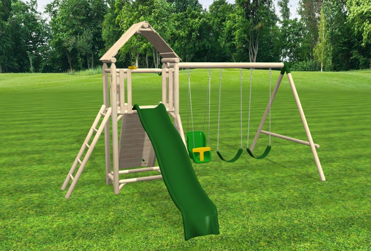 Budget-friendly swingsets made from round cedar stock